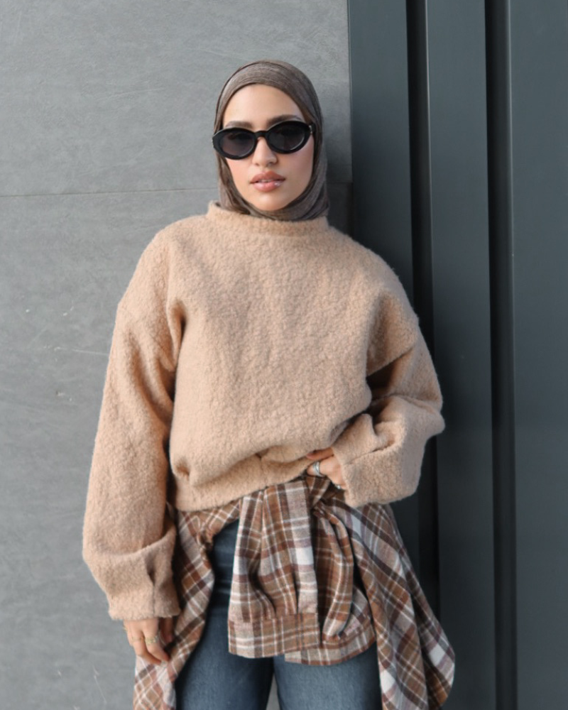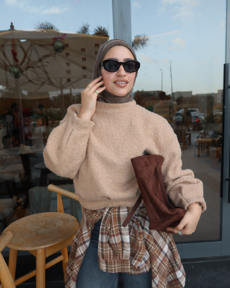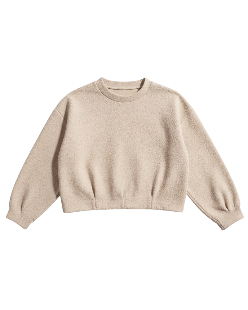 A cozy cropped sweater designed with a soft, textured feel for extra warmth and comfort. The relaxed fit and clean silhouette make it perfect for everyday winter styling, while the plush fabric adds a refined, modern touch. Easy to style with high-waist pants, skirts, or layered looks for a warm yet effortless outfit.